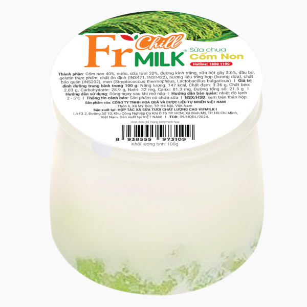 Sữa chua cốm non Fr Chill Milk – món quà hương vị mang đậm dấu ấn truyền thống và hiện đại. Vị ngọt thanh, thơm nồng của cốm non quyện cùng sự mát lạnh, béo nhẹ của sữa chua lên men từ nguồn sữa tươi sạch, tạo nên trải nghiệm thưởng thức vừa quen thuộc vừa mới lạ. Không chỉ hấp dẫn bởi hương vị dẻo bùi, ngọt dịu, mỗi hũ sữa chua cốm non còn chứa nhiều lợi khuẩn tự nhiên, hỗ trợ tiêu hóa khỏe mạnh, giúp hấp thu dinh dưỡng tối ưu. Sản phẩm giàu canxi và dưỡng chất quý, mang đến sự lựa chọn bổ dưỡng, thanh mát, phù hợp cho mọi thành viên trong gia đình – từ người lớn đến trẻ nhỏ.