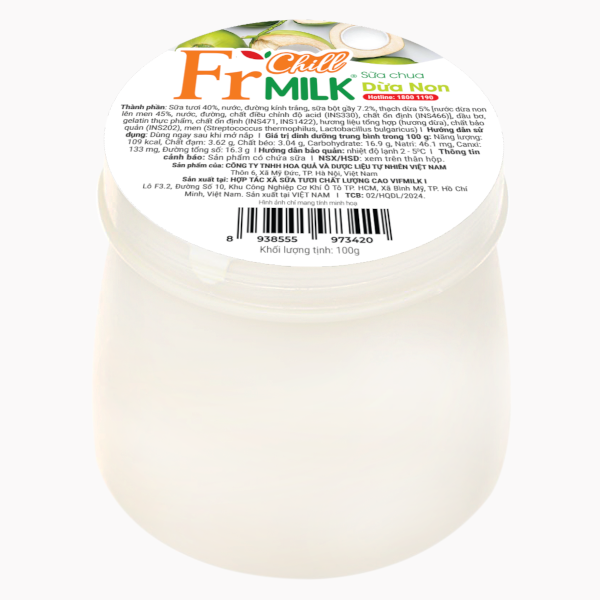 Sữa chua dừa non Fr Chill Milk – món ăn vặt bổ dưỡng, thanh mát chinh phục vị giác ngay từ lần đầu thưởng thức. Sự hòa quyện tinh tế giữa vị chua nhẹ, mát lành của sữa chua lên men từ sữa tươi sạch cùng độ giòn dai, béo thơm tự nhiên của dừa non tạo nên trải nghiệm vừa lạ miệng vừa cuốn hút. Không chỉ mang lại cảm giác ngon miệng, sữa chua dừa non còn chứa nhiều lợi khuẩn tốt cho hệ tiêu hóa, giúp hấp thu dinh dưỡng hiệu quả và duy trì sức khỏe đường ruột. Giàu canxi và dưỡng chất cần thiết, sản phẩm là lựa chọn tuyệt vời cho bữa phụ lành mạnh của mọi thành viên trong gia đình. Một hũ nhỏ thôi nhưng đủ đem đến vị ngon khó cưỡng và nguồn năng lượng tươi mới mỗi ngày.